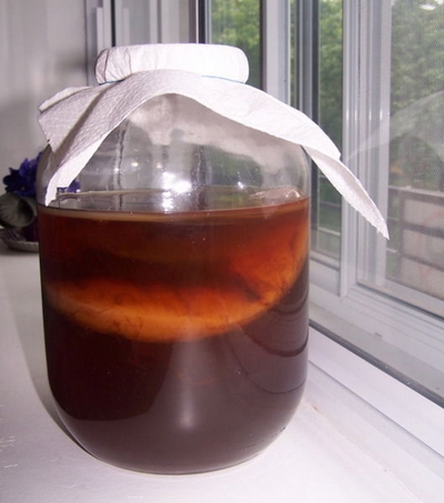 Do vypařené sklenice nalijeme čajový výluh, rozpustíme cukr nebo med, případně osladíme spařenými listy stevie a necháme zchladnout na pokojovou teplotu (23 až 25 °C). Při nižších teplotách by houba špatně narůstala.